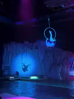 3D全息幕布+海豚跃出水面,震撼人心!左侧第5排的幸运观众有机会与游过来的海豚进行眼神交流和互动,有时甚至还能看到企鹅惊喜现身!
