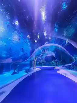 踏入水下隧道,深蓝色的波浪瞬间将你包围。成群的鱼儿在头顶游弋,阳光在玻璃上跳跃闪烁。指尖轻触玻璃,仿佛触碰到了深海的温柔。十二星座如同光影交汇,置身其中,如梦似幻,充满魔力。