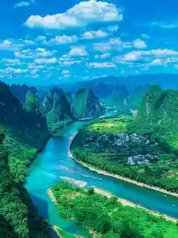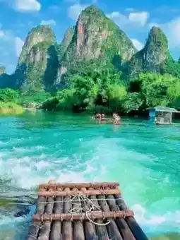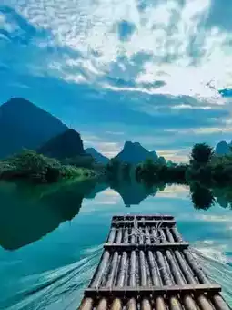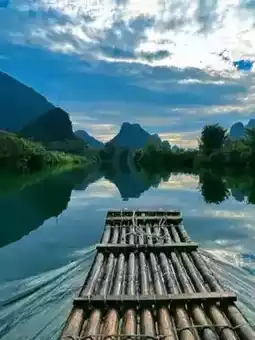 - **漓江竹筏漂流**:选择兴坪至九马壁山段。悠闲地乘坐竹筏漂流,欣赏山峰入水,直至山峦与倒影难分彼此。船夫的民歌将为您带来愉悦的心情。