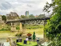 这里是品茗赏景的好去处,您可以感受河风拂面,远眺跨越越南的铁路桥。