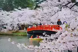 📸 分享一些隐藏的拍照地点 • 沿着西护城河的“樱花隧道”,向上拍摄,将樱花与弘前城框入画面 • 在城楼石墙前,以飘落的花瓣为前景,捕捉永恒的日式美景 • 清晨薄雾中吉光桥的倒影,营造梦幻般的氛围