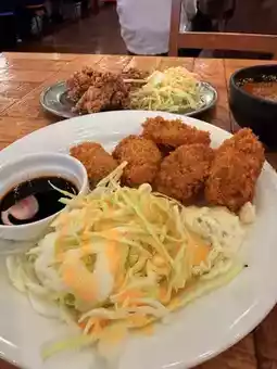 除了沾面,炸牡蛎、超大份炸鸡和广岛风味菜肴也是它的招牌菜。店内主要出售以广岛特产为基础的菜肴。店铺装潢如同节日摊位,墙上挂满了广岛东洋鲤鱼队的签名球衣。这家店也深受球员、球迷和艺术家的喜爱。店内还有一种特色饮品——“千宝”(Chibo),这是一种自20世纪50年代起就在广岛生产的乳酸饮料,如今市面上已不多见。这家店将“千宝”调制成高球鸡尾酒,深受当地人的喜爱。