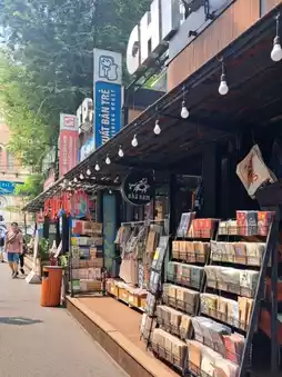 这是一条非常热闹的步行街,两旁林立着书店,出售来自越南和世界各地的书籍。