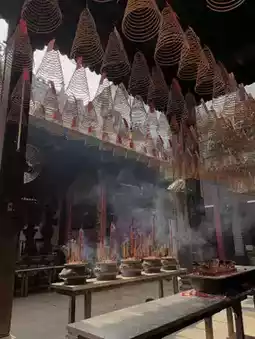 踏入寺庙,香烟缭绕,红金相间的装饰映入眼帘。悬挂在天花板上的螺旋形香烛承载着人们的愿望,神秘的景象令人叹为观止✨