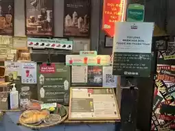 他们还提供各种当地特色饮品,例如炼乳咖啡(cafe sua da)和冰奶茶。