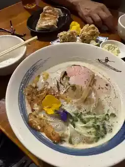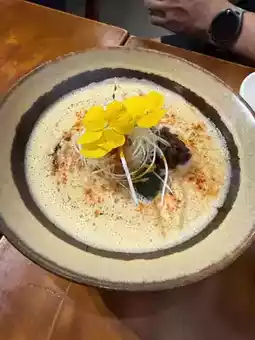 这家咖啡馆公寓远超预期——干净、时尚、舒适。咖啡一般,但日式料理却令人惊艳——新鲜美味,摆盘精美。总而言之,是个很棒的地方!绝对值得米其林推荐!红发河粉的猪肉面也堪称一绝——汤底浓郁,面条劲道十足,猪肉更是软嫩无比。面食爱好者一定要来尝尝!