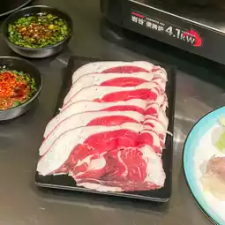 勺柄是牛前腿上方的肉,脂肪较少。用手切成薄片,涮8秒钟就可以吃了!