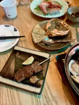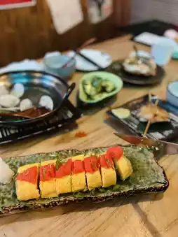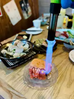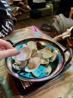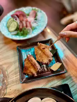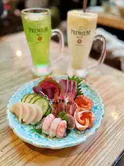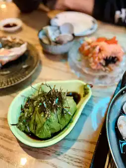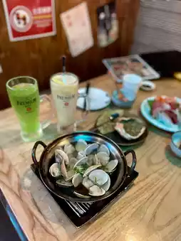 居酒屋应有尽有~ 三文鱼刺身🍣和寿司层层叠叠,烤制后上桌,色香味俱全😍。烤制后鱼油的香气扑鼻而来;煮熟的白蛤锅散发着清酒的清香🍶,蛤肉鲜甜可口;开胃菜牛油果芥末腌菜尝起来像金枪鱼💚;烤牛舌芯蒜香浓郁,口感劲道。最后,居酒屋怎么能少了酒水呢🍸干杯!