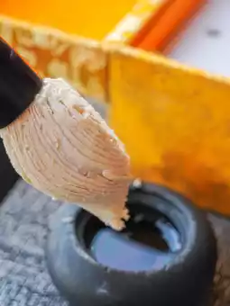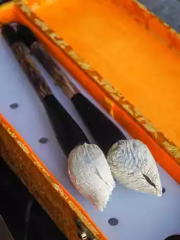 紫薯麻糬做成毛笔的形状,用黑糖蜜模拟书法墨汁。👑