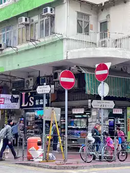 我们沿着街走着,感觉有点像台湾的菜市场,到处都是日用品、箱包、衣服、新鲜水果等等。就像奶奶或妈妈早上在家买菜的地方一样,很有本地特色,也很有趣!我们还看到了香港卖金鱼的方式。我记得很多店铺不允许拍照,所以我们只敢远远地拍张照片留作纪念。
