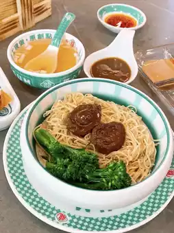 选用元朗“好底”虾面,该虾面创立于1946年,是香港第一家虾面店;吉品培根精选自近百年历史的“永珍”海鲜,佐以阿宜培根学徒梁胜伟师傅秘制培根酱,选用培根、鸡肉、排骨、上等优质食材,经水煮三天后烤制而成,风味绝佳;