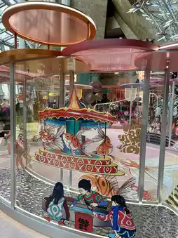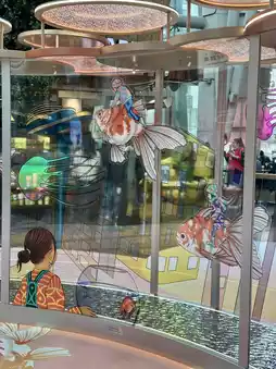 农历新年过后,我漫步朗豪坊,发现中庭这次新增了一个艺术装置,非常有趣。您可以欣赏展览并拍照留念!展览以红色为主色调,旨在契合农历新年的喜庆氛围。以金鱼为主题,寓意着每年美好的祝愿🐠,在透明胶合板上呈现了一系列充满怀旧气息的画作,例如金鱼坐在旋转木马上、孩子们在游乐场玩耍等等,旁边还配有简短的画作说明,值得一看🫶🏻