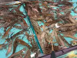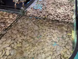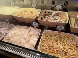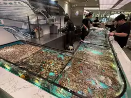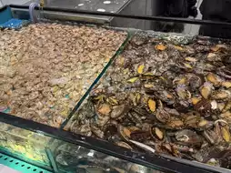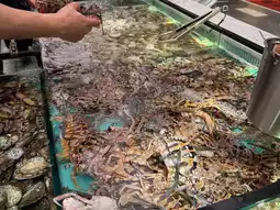 入口处的U型鱼缸里养着好多培根、虾、贻贝、螃蟹、螺蛳……个个鲜活诱人!