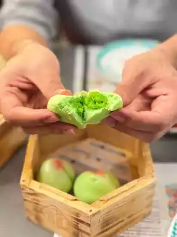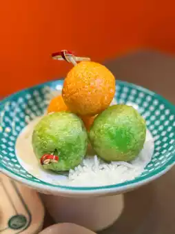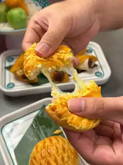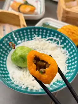 我喜欢一口咸水角,橙绿搭配很用心,糯米皮里包裹着肉末、香菇、葱花,咸甜酥脆的口感我很喜欢👍🏻