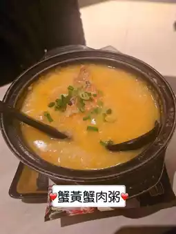这是我第一次吃到这么鲜甜的蟹粥,粥底金黄诱人。因为蟹黄丰富,即使已经很饱了,还是忍不住又吃了好几碗!
