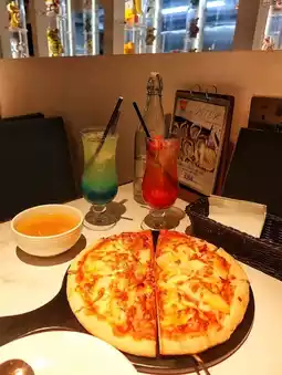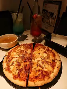 夏威夷披萨(港币 148 元):饼边略带酥脆,芝士包裹在酥脆的披萨饼底中,搭配充满热带风情的千岛酱,菠萝的甜美与烟熏火腿的咸香完美融合。🍫