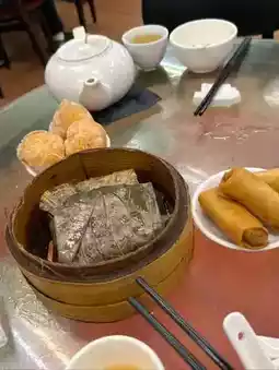 → 在罗安居,服务员会推着装有蒸笼的推车到您的桌边,您可以挑选自己喜欢的点心。