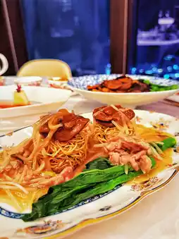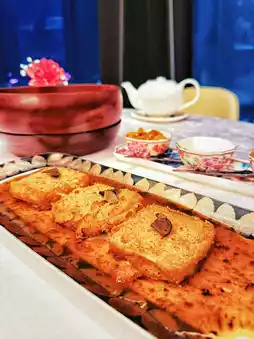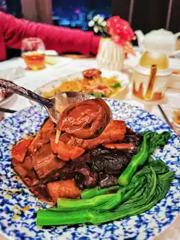 猫爪金酱胡萝卜 HKD 168 椒盐脆芥菜芯 HKD 188 禅衣扇贝 HKD 336 荔枝金盒 HKD 288 大红袍乳鸽 HKD 198 黑虎掌红烧豆腐 HKD 268 培根丸子肉丝炒面 HKD 196 荔枝石榴甜品 HKD 156