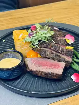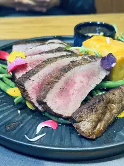 这道牛肉令人惊喜,外皮焦香,肉质鲜嫩多汁。培根芝士玉米饼尤其美味,入口即化,玉米味浓郁。这道菜还搭配了多种蔬菜,包括四季豆、香菇、红黄甜椒条和圣女果,营养丰富,令人满足。▪️三重奏