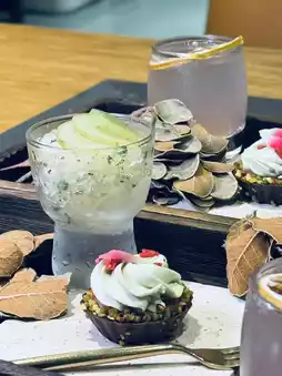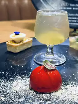 三款创意甜点搭配得恰到好处,其中雪葩清爽宜人。我最喜欢的是开心果脆皮挞,口感丰富。薰衣草姜汁柠檬啤酒甜中带姜,是完美的收尾之选。✨巧克力