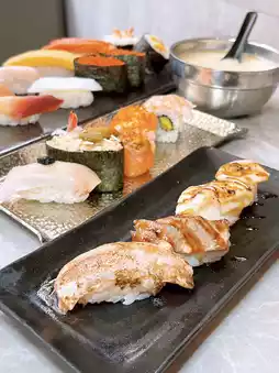 寿司、卷、船卷、手卷🍣有40多种选择,还有黑松露油鱼寿司、龙虾酱甜虾寿司、和牛烤寿司等特色款。