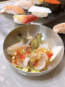 来这里有12种刺身可供选择💦。必点当然是巨型红虾、油鱼、白玉贻贝、北海道角螺、酱油金枪鱼,肉质厚实,可以切成大块,非常新鲜。