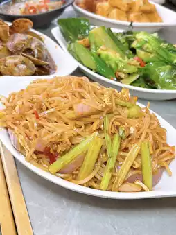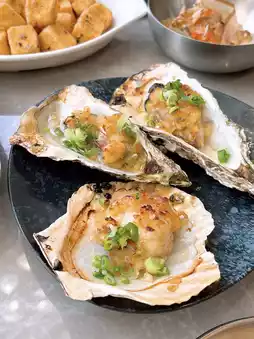 熟食有天妇罗、烤肉、泰式料理,油炸食品里有我最爱的脆皮炸香蕉、炸榴莲球、炸虾天妇罗,都热气腾腾,香气扑鼻,尤其是炸榴莲球,榴莲味特别浓郁🤩。泰式料理非常诱人,泰式炒什锦蔬菜相当美味,辣椒酱炒贻贝分量很足,泰式黄金米粉分量足,辣味十足,烤牡蛎也可以选择。热烤牡蛎 🔥