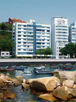 ·我从尖沙咀搭乘地铁到金钟,然后等6路城巴。我选了二楼右侧的座位,因为导航显示它会经过浅水湾,而浅水湾是能看到海景的方向。巴士在山间摇晃,一边是碧蓝的海湾,一边是葱郁的丛林。