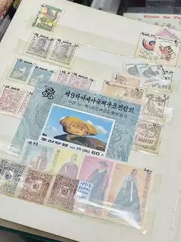 我好奇地逛了一圈,最后买了韩国和香港的邮票当纪念品,嘿嘿。