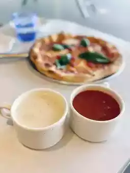 ,浓郁的马苏里拉奶酪🧀搭配番茄酱,口感顺滑,饼底酥脆,小番茄甜美可口,罗勒叶的清香🌱更添一丝清新。整体来说,味道浓郁却不腻,非常美味😋👍🏻。对了,分量也很足;我们俩一起分享,吃得好饱🤣