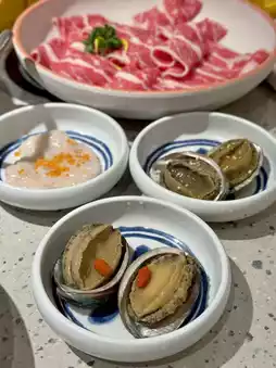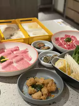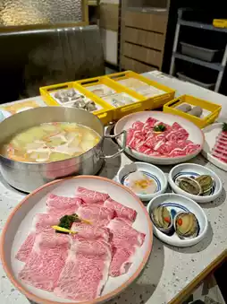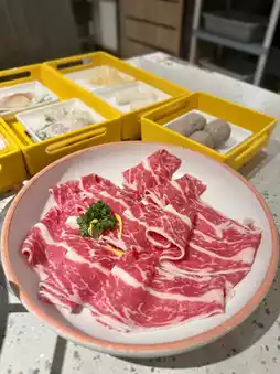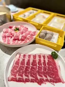 这家A4级黑毛和牛火锅自助餐真是太棒了!绝对是牛肉爱好者的天堂!黑毛和牛无限量供应,真的可以吃到撑。除了黑毛和牛,还有油花分布均匀、入口即化、牛肉味浓郁的顶级安格斯牛小排!澳洲M6级和牛牛腩也非常嫩滑。此外,还有各种牛肉、猪肉和鸡肉无限量供应,绝对让你大快朵颐!