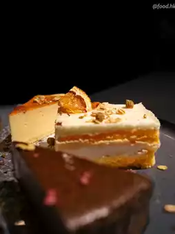 周一至周四,餐厅提供蛋糕自助餐,只需额外支付28美元,即可无限畅享原味芝士蛋糕、巧克力芝士蛋糕、抹茶芝士蛋糕等多种口味。我尝试了柚子酸奶和提拉米苏,味道尚可,口感顺滑,但并不惊艳。不过,考虑到这个价格,性价比还是很高的。