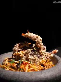 🍝蒜蓉辣椒蛤蜊意面×软壳蟹:海陆双拼至尊。