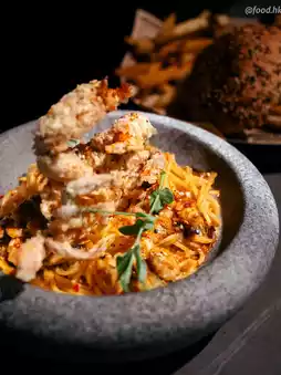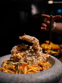 意面一上桌,浓郁的蒜香就扑面而来,连隔壁桌的韩国欧巴都忍不住回头张望。最令人意想不到的是,那只手掌大小的软壳蟹,炸得酥脆可口,蟹黄却依然饱满鲜嫩!