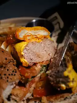 我原以为“安格斯牛肉+辣炸鸡”的组合只是个噱头,但一口下去就颠覆了我的认知——香脆炸鸡的辛辣和安格斯牛肉的黄油香气竟然一点也不冲突,反而像韩流男女组合的二重唱一样完美融合!虽然牛肉有点“过火”(略干),但酱汁和腌萝卜充满了浓郁的韩式风味,完美地平衡了整体口感。🍰