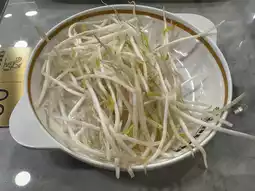 豆芽是另一种不常见的火锅食材,口感爽脆,成了虾饼的最爱。