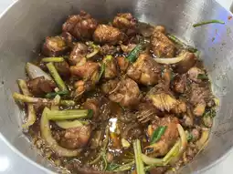 拌匀后,我们开始享用。鸡肉分量很足,肉质鲜嫩多汁,一点也不干柴。