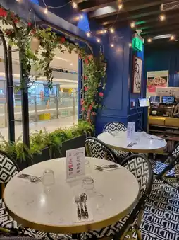 去了法式餐厅Odelice💙,餐厅地面铺着黑白瓷砖🖤🤍,墙上装饰着花卉图案和壁画🌸🖼,营造出一种仿佛置身巴黎的氛围🌹。