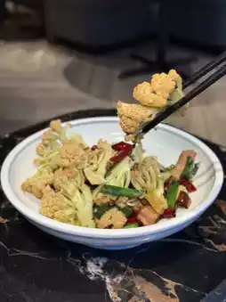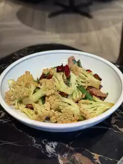 花椰菜脆嫩可口,烹饪得恰到好处,口感爽脆,色泽均匀,经过翻炒吸收了肉片的鲜香,香气完美融合。