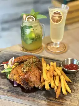 Unexpectedly, the chef specially uses Sanhuang chicken, with glossy amber-colored skin shining like caramel. The chicken meat is tender and juicy! The malt aroma of the black beer seeps into the meat, the garlic flavor is rich but not overpowering, the skin is slightly crispy, and you’ll want to gnaw every last bit off the bone!