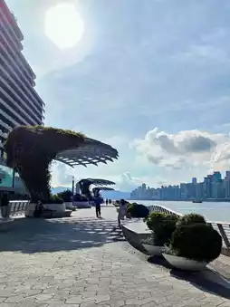 ✨漫步维多利亚港🏃 这是游客到访香港的必游项目之一。美丽的滨海步道视野开阔,可以清晰地欣赏到九龙和香港岛的高楼大厦。我们早上来这里散步,感觉非常棒——非常适合漫步或慢跑,欣赏海港美景。我们去的那天,天空晴朗明媚,碧空如洗,维多利亚港的碧波荡漾,高楼林立,仿佛在宣告你已抵达香港。到了晚上,这里会变得热闹一些,人们会来观看夜间灯光秀。