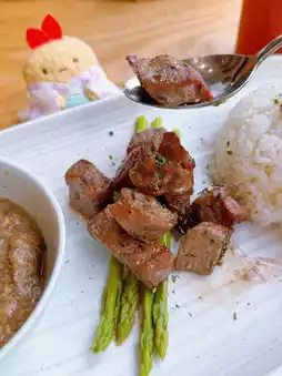 我还点了一份日式和牛小份饭✅ 米饭搭配了餐厅秘制的牛肝菌酱汁🤩 牛肝菌的味道浓郁芬芳,配上几碗米饭简直绝配🤣 和牛鲜嫩多汁,浓郁的肉香,令人回味无穷😋
