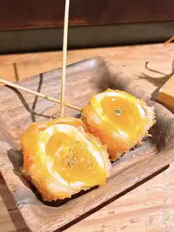 炸猪肉卷包裹着一颗溏心蛋,蛋黄流心,口感完美