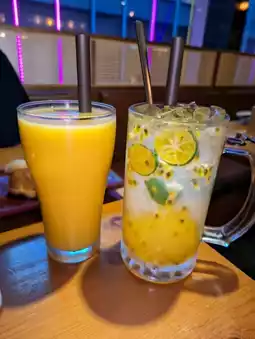 饮品方面,我们点了【鲜榨芒果酸奶 $28】鲜榨芒果汁香甜可口,搭配酸奶,清爽怡人。 【鲜百香果金桔苏打水 32元】酸甜可口,非常解渴美味。