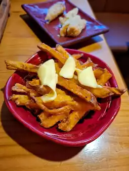 【柠檬蜂蜜黄油包(港式)$20】包子上涂抹了两片黄油和柠檬蜂蜜,香甜可口;【黄油蜂蜜日式红薯条(唐式)$38】红薯条外酥里嫩,淋上黄油蜂蜜,香甜而不油腻;【黄油蒜蓉芝士烤什锦蘑菇(日式)$42】淋上融化的芝士,铺满什锦蘑菇,蒜香浓郁;