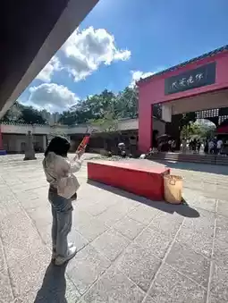 进入寺庙前,您可以在寺庙外购买祭祀用品。他们出售香、蜡烛、纸钱、金箔,当然您也可以自带。我买了一套祭祀用品,还买了一张金箔带回家贴在家里。有些人还会买小风车带回去祈求好运。让