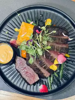 鹅肉呈琥珀色,鲜嫩多汁,带有淡淡的甘蔗香和烟熏味
