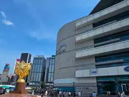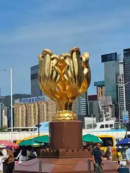 位于香港湾仔香港会议展览中心新翼的金紫荆广场,是世博园的一部分。近年来,它已成为许多中国内地游客的必游景点之一。广场上的雕塑象征着香港的繁荣昌盛;这座铜像高6米,重70吨,通体镀金,置于红色花岗岩基座之上。基座为圆底方柱,象征九省统一,并镌刻长城纹样,寓意中国拥抱香港。