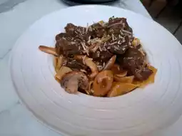 牛颊肉鲜嫩多汁,完全吸收了浓郁的红酒酱汁,风味十足,富含胶原蛋白。宽面条口感劲道,仿佛手工制作。红酒和香草的加入,令整道菜香甜可口。