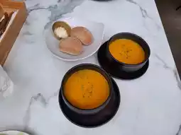 汤品是南瓜汤,也可以加48元升级为法式龙虾浓汤/牛肝菌奶油汤。南瓜汤非常浓郁顺滑,层次丰富,南瓜味十足,配上热乎乎的小麦面包和黄油,简直完美满足了我的味蕾。